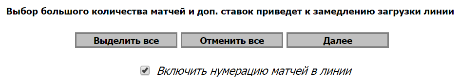 Если Вы хотите увидеть матчи только одного вида спорта, просто нажмите на название вида спорта. Затем Вы можете просматривать сколько угодно событий по выбранным видам спорта, поставив галочку рядом с каждым чемпионатом и нажав кнопку «Далее» внизу экрана.