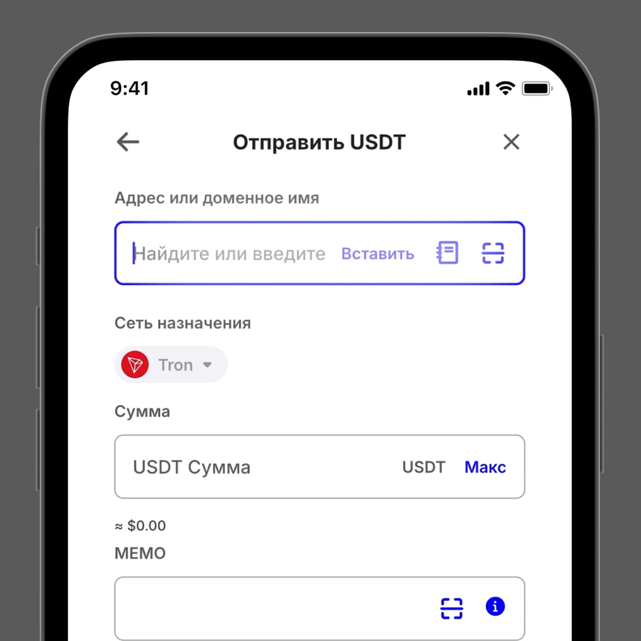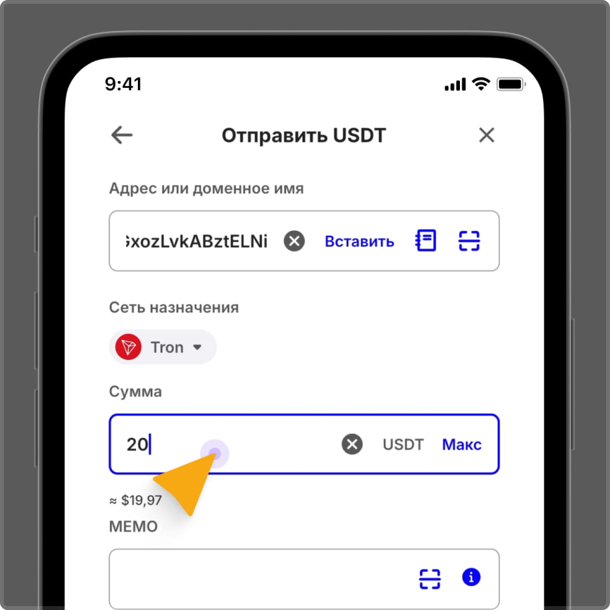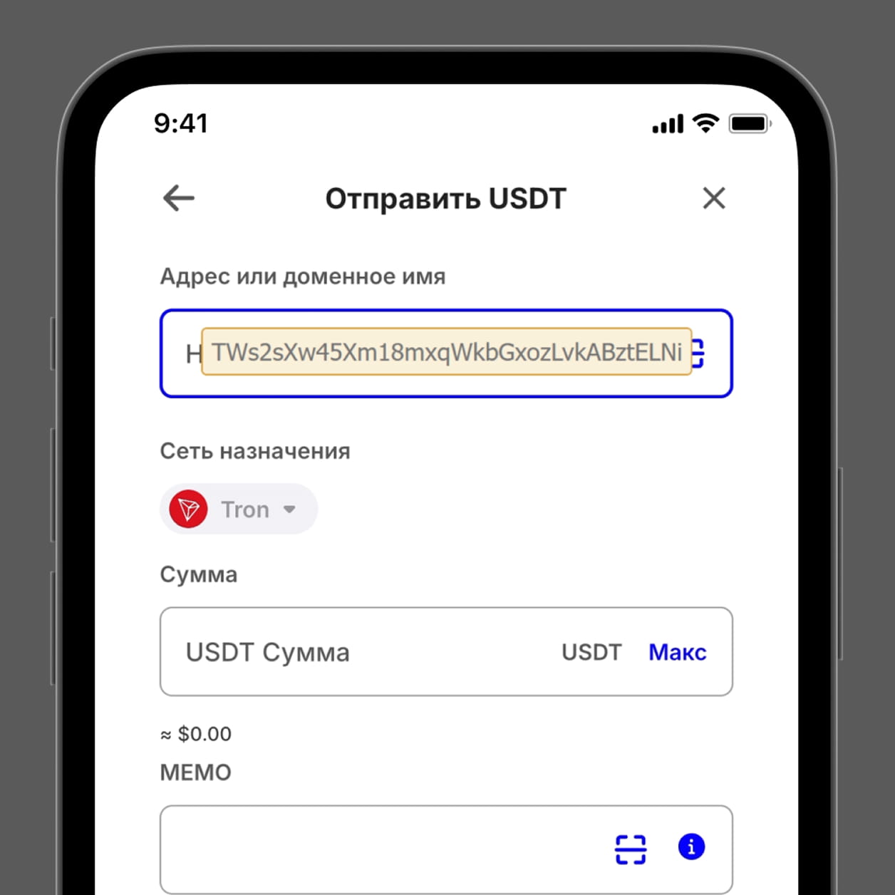 Пример: USDT (TRC-20)