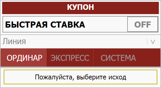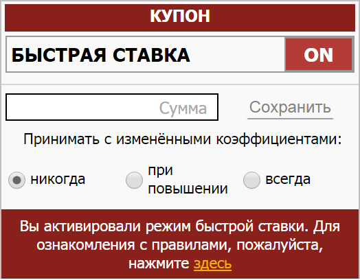 Режим «Быстрая ставка» При входе на основную версию сайта с компьютера Вы можете воспользоваться функцией «Быстрая ставка» в купоне: