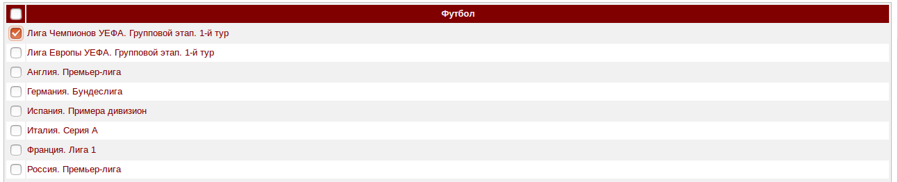 Далее Вы увидите различные чемпионаты по выбранному вами виду спорта.