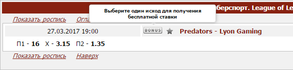 Для того чтобы сделать бесплатную ставку, необходимо выбрать один исход, с коэффициентом не ниже требуемого. При добавлении его в купон - появится кнопка бесплатной ставки.