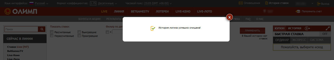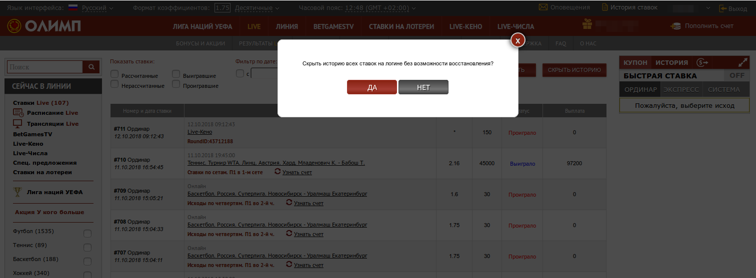 Скрытие истории ставок возможно только при соответствии логина следующим условиям: